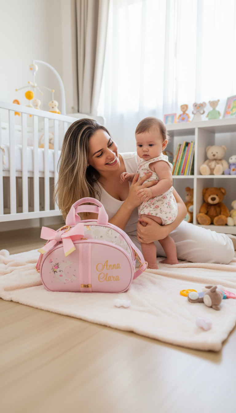Ser mamãe é viver momentos inesquecíveis e cada detalhe faz a diferença nessa jornada tão especial! A Bolsa Maternidade Bordada Personalizada foi pensada para as mamães que não dispensam elegância, praticidade e um toque exclusivo com o nome do bebê.